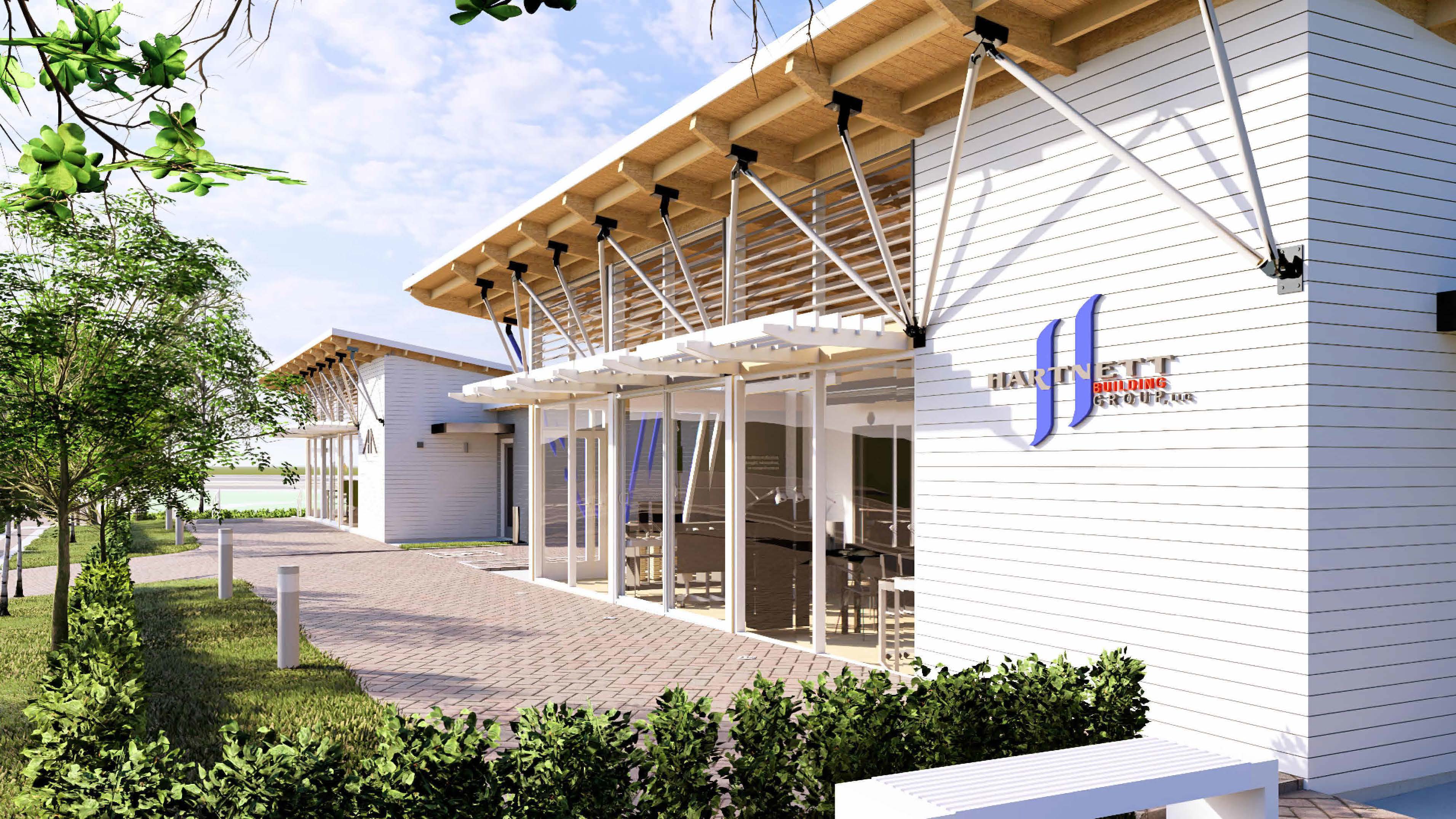 At AHA, we're thrilled to showcase our latest project: two innovative office buildings in West Palm Beach, designed for our firm and our esteemed collaborators, Harnett Building Group. This endeavor was a deeply personal one, allowing us to manifest our design philosophy in our own workspace. The buildings feature a harmonious blend of contemporary aesthetics and functional design, with expansive glass elements inviting natural light and a clean, modern material palette. The deliberate use of exposed wood and angular supports adds a dynamic architectural interest that speaks to our commitment to thoughtful and inspiring design.