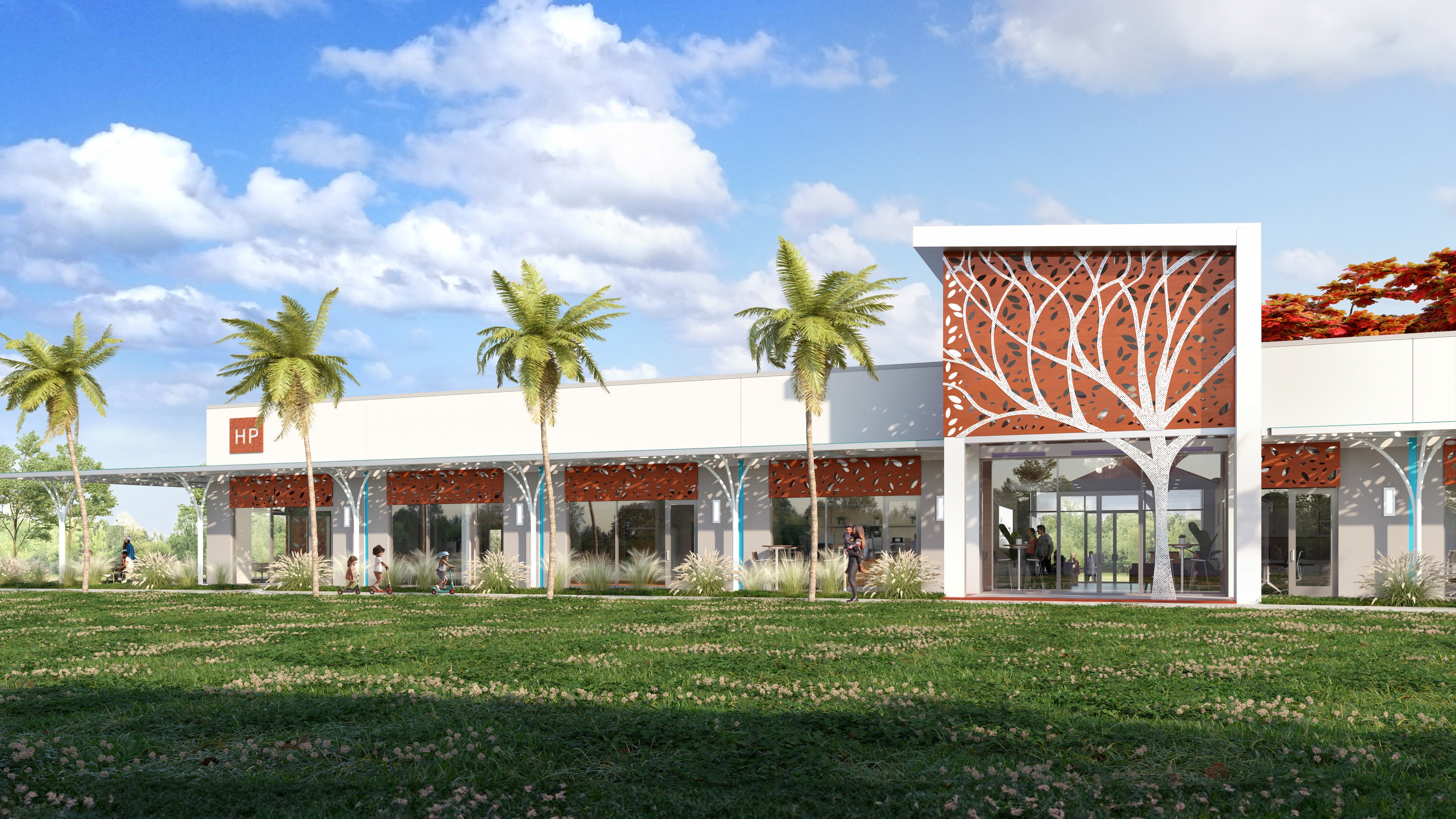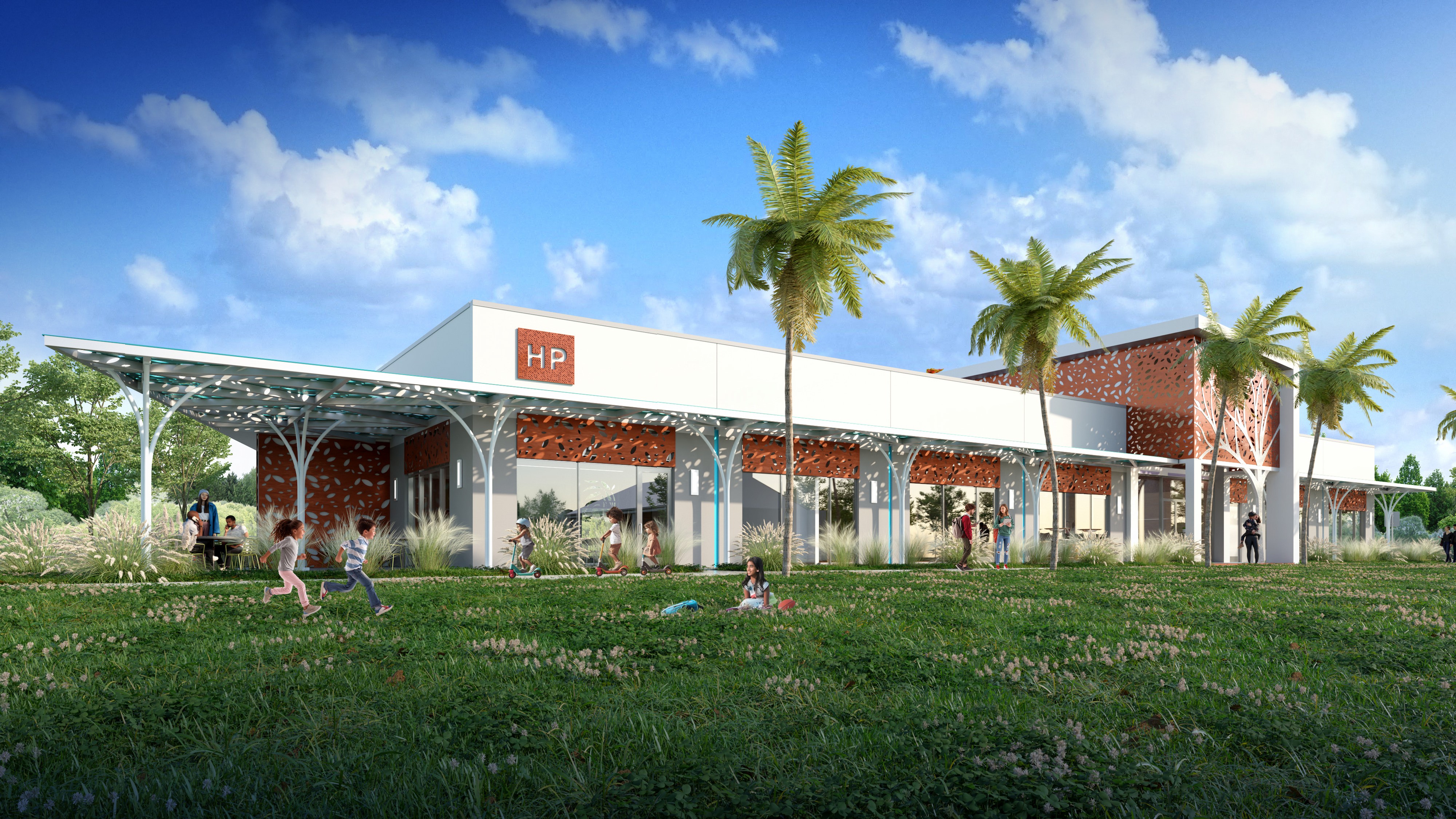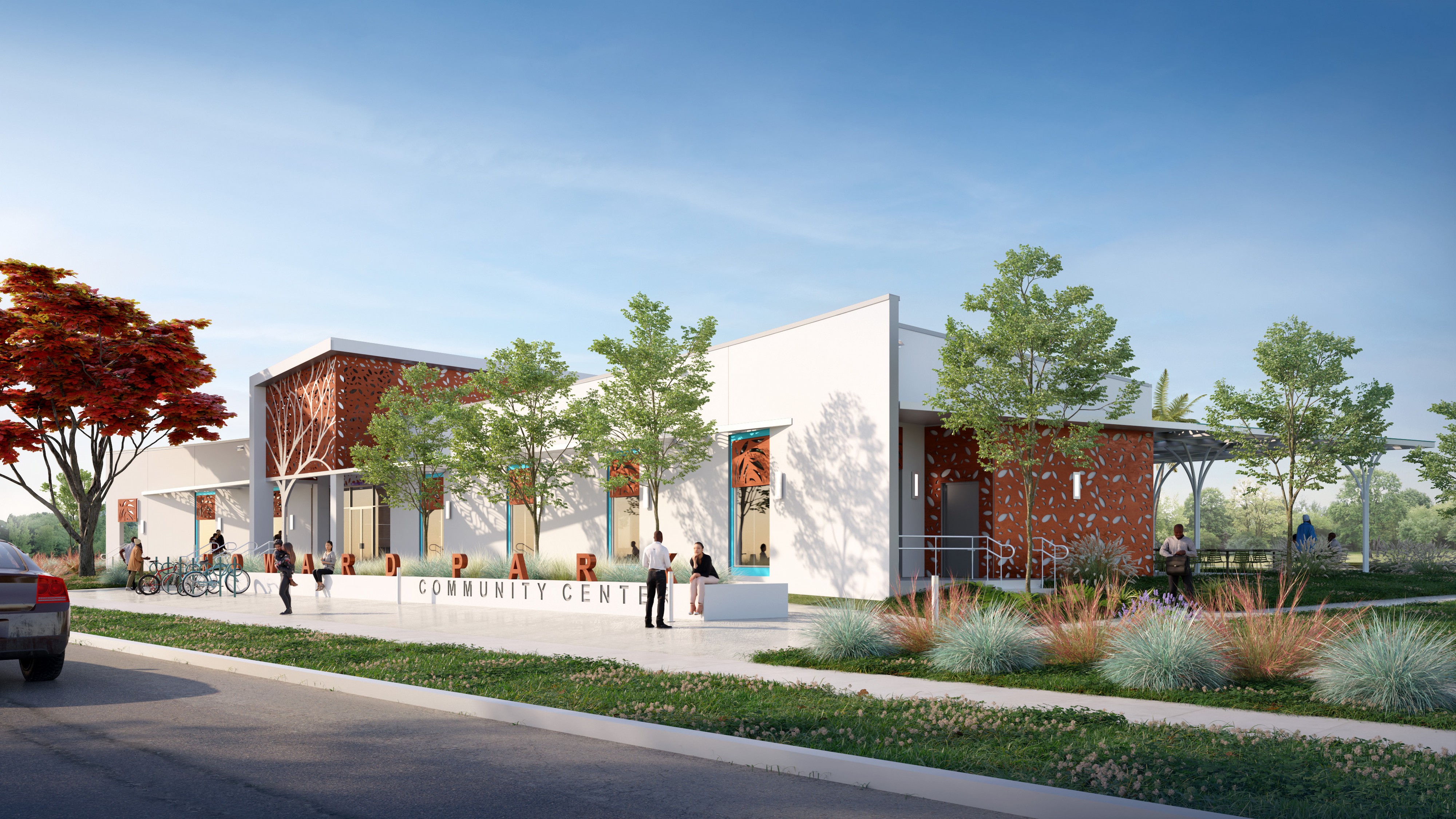 Rooted in local heritage, the design of the Howard Park Community Center pays tribute to the legacy of D.D. Howard, a historical figure tied to the park’s origins and its namesake. Drawing inspiration from the iconic Royal Poinciana tree, the architecture incorporates vivid references to its branching canopy and bold blossoms through sculptural accents and perforated metal panels. These elements frame key entry points and windows, offering shade while expressing a nature-inspired identity that resonates with the site’s history and environment. The Howard Park Community Center is a new civic building in West Palm Beach, envisioned as a vibrant and welcoming hub for residents and visitors alike. With flexible multipurpose rooms and a café, the center functions as both a social and recreational anchor for the community—designed to connect people, place, and purpose.