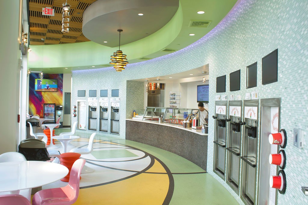 Johnny Swirls, a self-serve frozen yogurt shop in Jupiter, Florida, underwent a vibrant renovation, transforming the retail space into a playful and inviting environment suited for both locals and visitors. The design emphasizes clarity and brightness—featuring a clean, modern palette with pops of vivid color that reflect the brand’s energetic, family-friendly atmosphere. Sleek surfaces, branded wall graphics, and integrated lighting contribute to a fresh, contemporary interior that enhances the self-serve experience.
