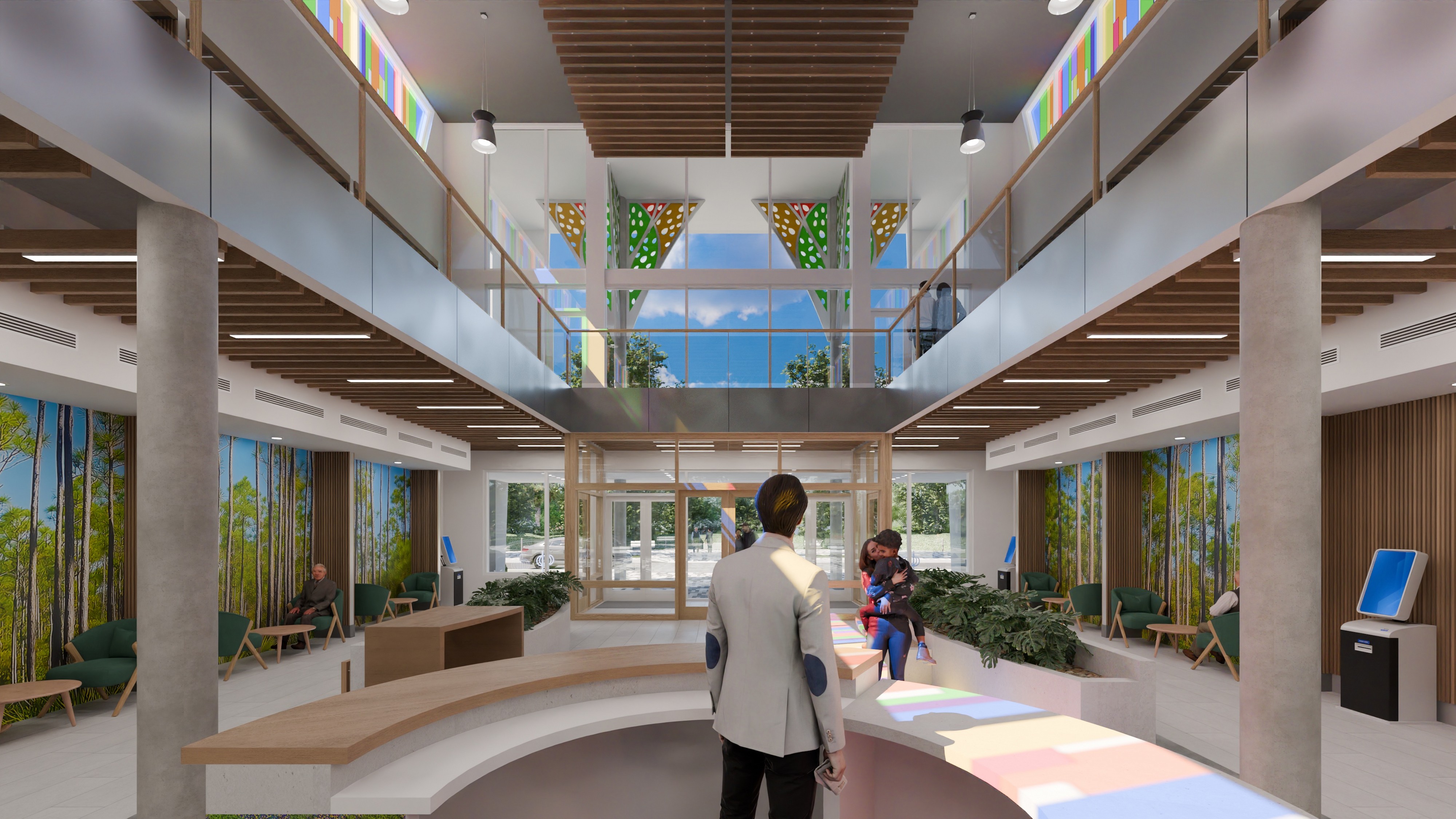 The Maude Ford Lee Community Services Facility is a new civic building that brings together vital programs including Homeless Outreach, Senior & Veteran Services, Human Services, Community Action, and the HIV Elimination Initiative. Designed with both functionality and compassion in mind, the two-story facility serves as a central resource for residents in need. Grounded in biophilic design, the building features warm wood finishes, abundant natural light, and passive shading systems that promote wellness, comfort, and sustainability. Shared spaces like the double-height lobby offer moments of calm and connection, with organic materials, filtered light, and sculptural elements that reflect the building’s mission of care and growth.