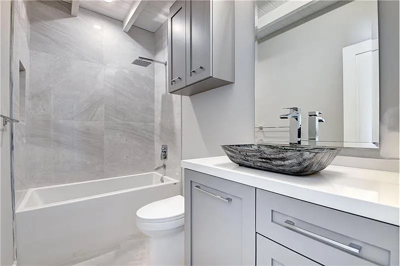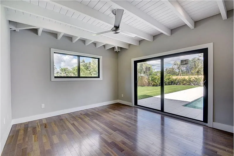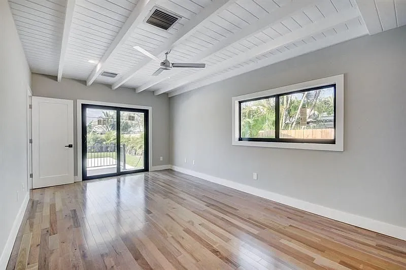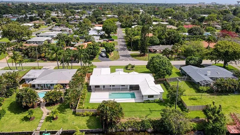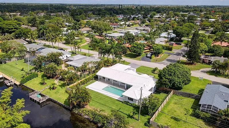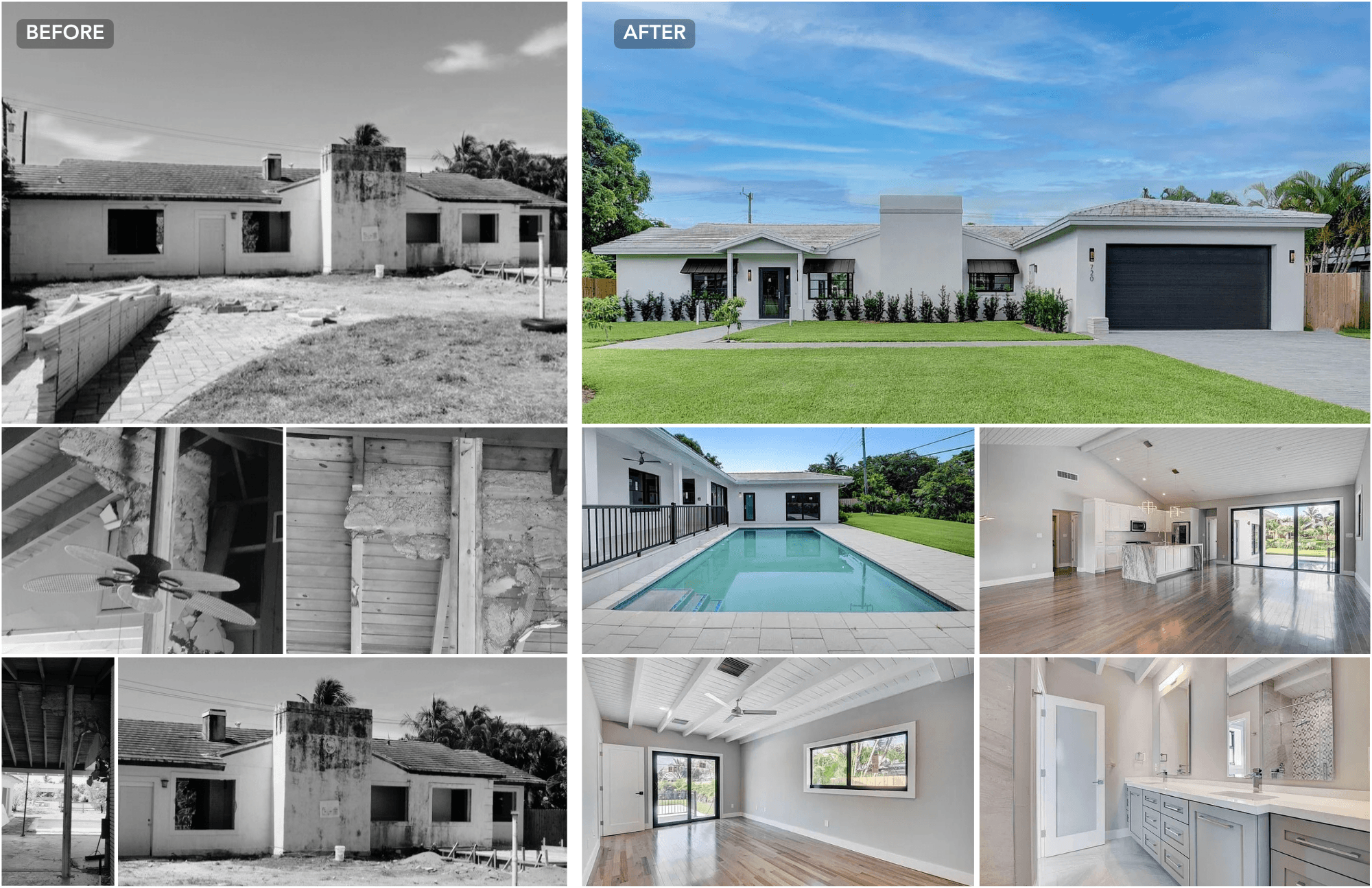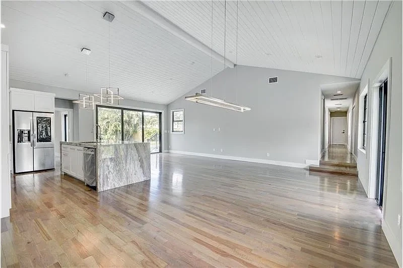 The restoration of 720 Mission Hill Road in Boynton Beach transformed a dated ranch-style residence into a crisp, modern home while preserving the essence of its original form. The exterior presents a clean white palette with sharp horizontal lines, a rebalanced entry volume, and minimal landscaping to highlight the home’s geometry. A reimagined roofline, updated fenestration, and dark accents bring a contemporary sensibility that blends effortlessly with the residential character of the neighborhood.
