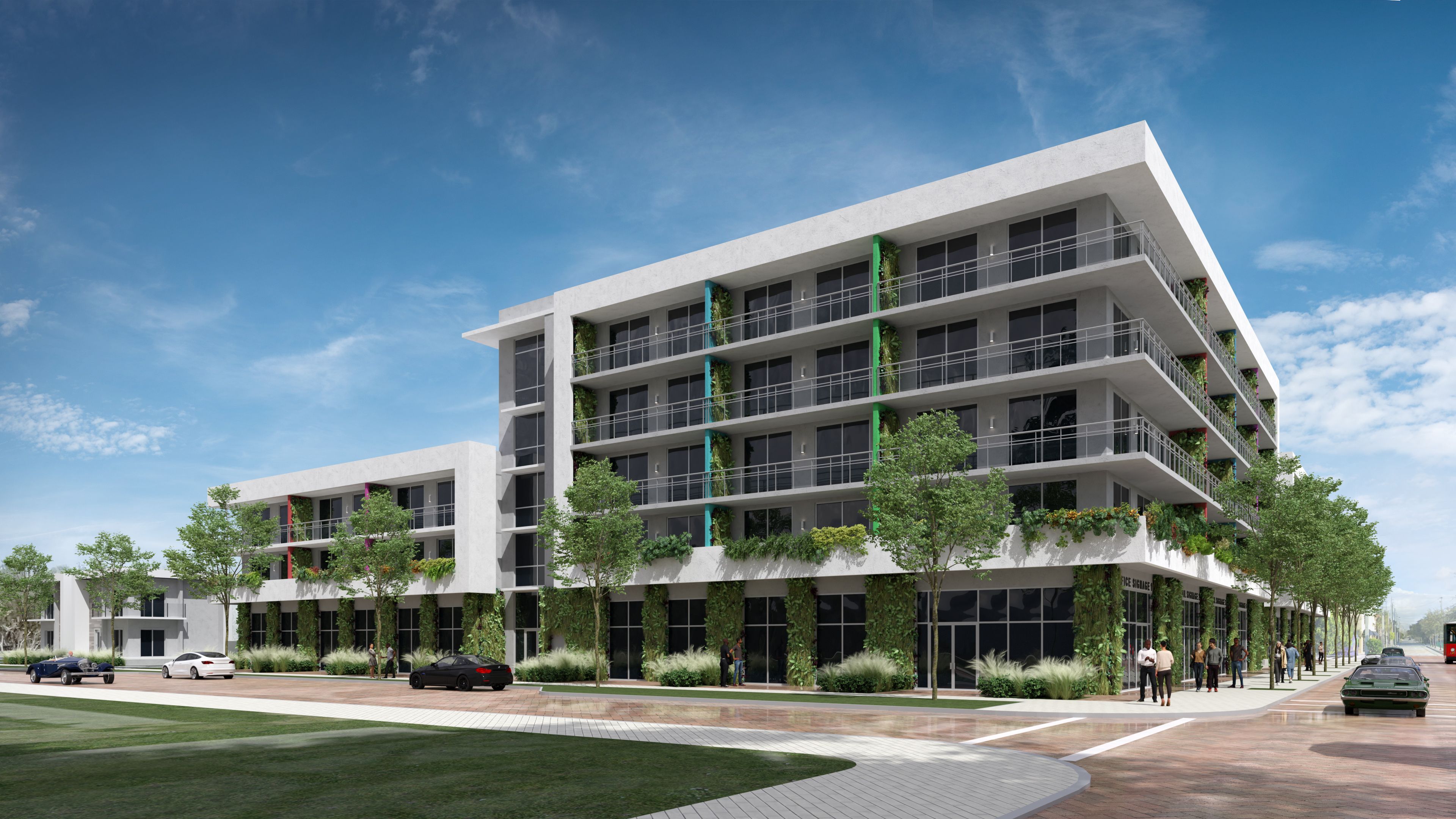 A signature element of our design is the deliberate infusion of art and color, exemplified by the striking, street-art-inspired mural on a prominent staircase. This artistic intervention, alongside the thoughtful application of varied colorful accents on the building facades, injects a distinct sense of vibrancy and contemporary flair. We believe this development will not only offer an amenity-rich living and working experience but will also serve as a captivating focal point, contributing significantly to the evolving urban fabric of West Palm Beach.